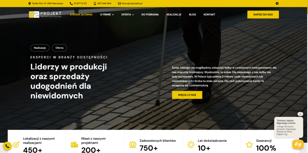 Czasem punktem wyjścia do stworzenia strony jest nie tylko potrzeba obecności w sieci, ale też głęboka misja. S2 Projekt to firma, która od lat dostarcza sprzęt dla osób niewidomych i niepełnosprawnych– i właśnie ta misja przyświecała całemu procesowi projektowania ich nowej witryny.