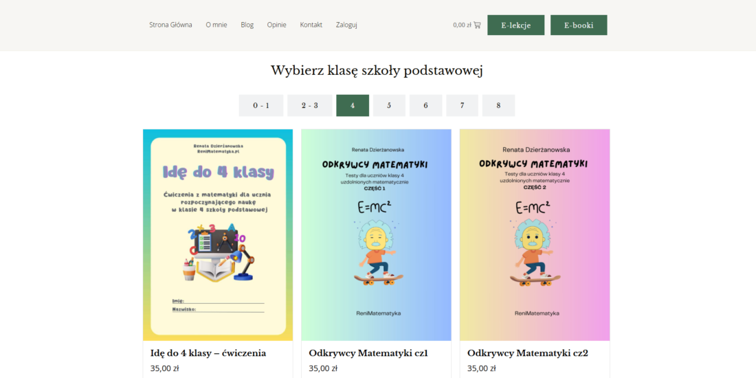 Renimatematyka to strona internetowa skierowana do uczniów szkół podstawowych, którzy chcą skutecznie przygotować się do egzaminów i poprawić swoje wyniki z matematyki. Jej pomysłodawczynią jest Renata Dzierżanowska – nauczycielka z ponad 20-letnim doświadczeniem, której uczniowie regularnie osiągają ponadprzeciętne wyniki w egzaminach 8-klasisty oraz odnoszą sukcesy w konkursach ogólnopolskich i międzynarodowych.