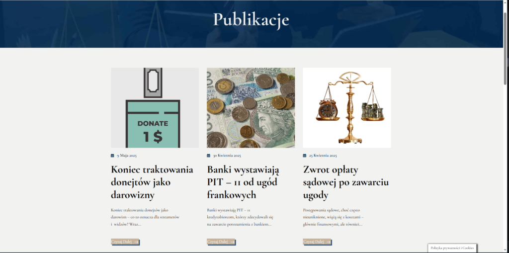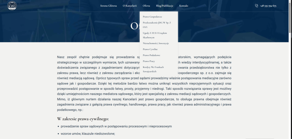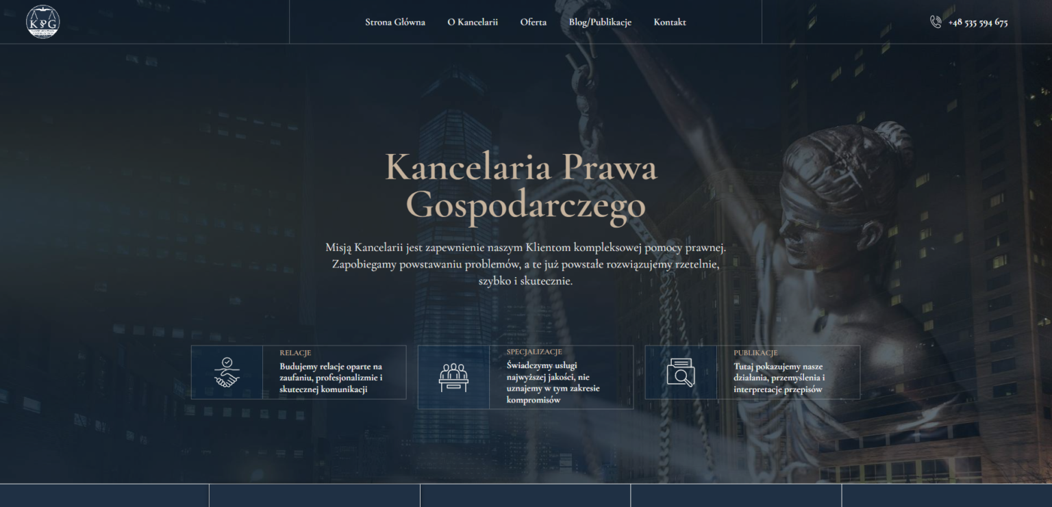 Dziś KPG Szara ma stronę, która mówi ich głosem – spokojnym, profesjonalnym i pełnym treści, z jasnym przekazem: “Znamy się na tym, co robimy.” A my? Cieszymy się, że mogliśmy współtworzyć ten projekt – bo nie każdy dzień daje okazję, by pogodzić prawo, technologię i estetykę.